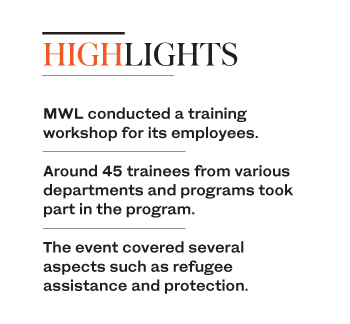 The workshop was organized in cooperation with the UN High Commissioner for Refugees (UNHCR) and covers several areas of MWL’s operation such as international refugee assistance and protection, camp management and community awareness.